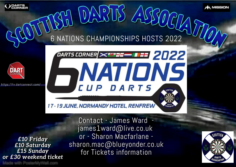 The 6 Nations Darts Championship will be held in Scotland this year, three years after the last event which was held in Assen, Holland.
